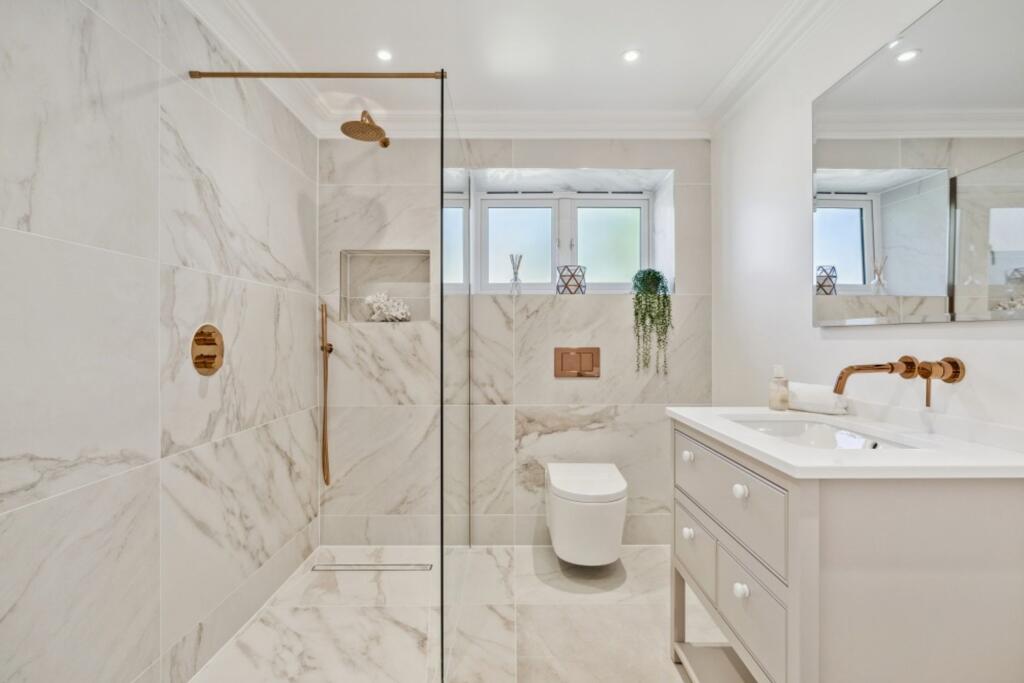 Upstairs, we created five bedrooms, three en-suites and two with walk-in dressing rooms. The master suite was designed as a retreat, featuring generous proportions and luxurious finishes.